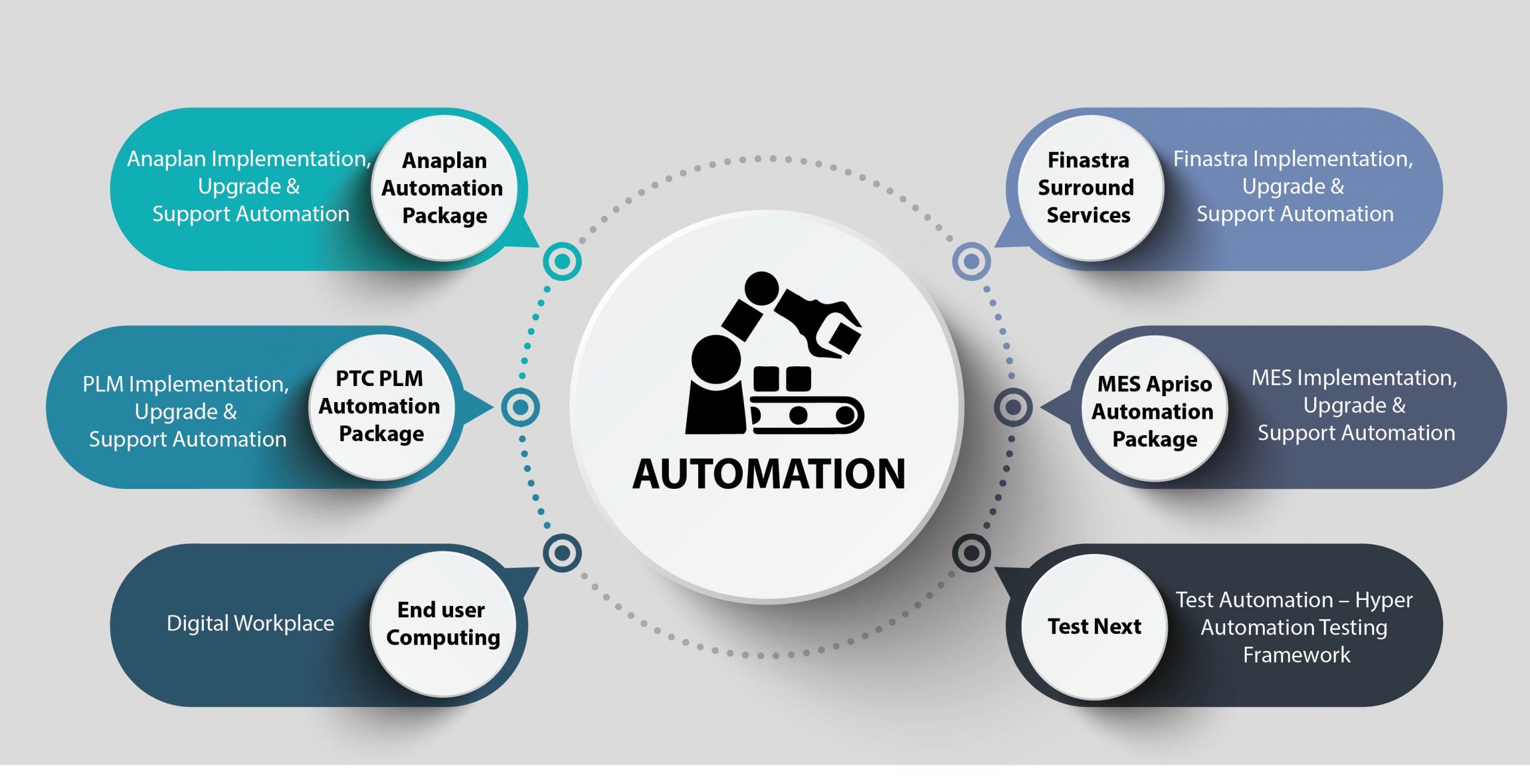 - Integrated Automation solutions – Deliver automation services to business integrated with End user computing, Testing, Application based Surround Services